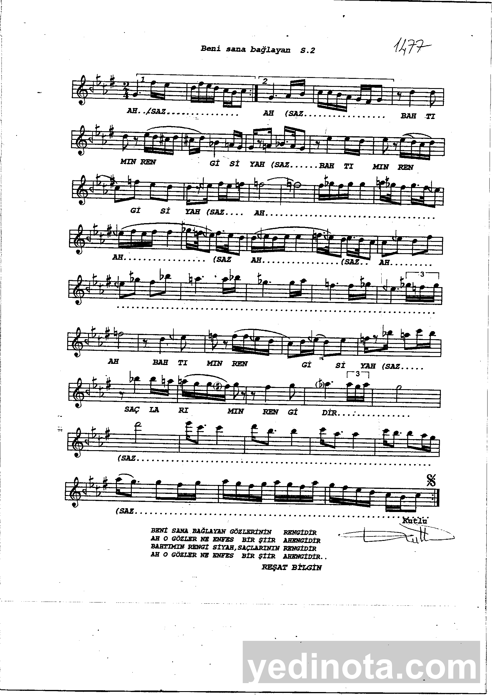 TRT Repertuar Numarası:1477BestekarıSadettin KaynakSöz YazarıReşat BilginMakamıHicazkarUsulüNim SofyanFormuŞarkı