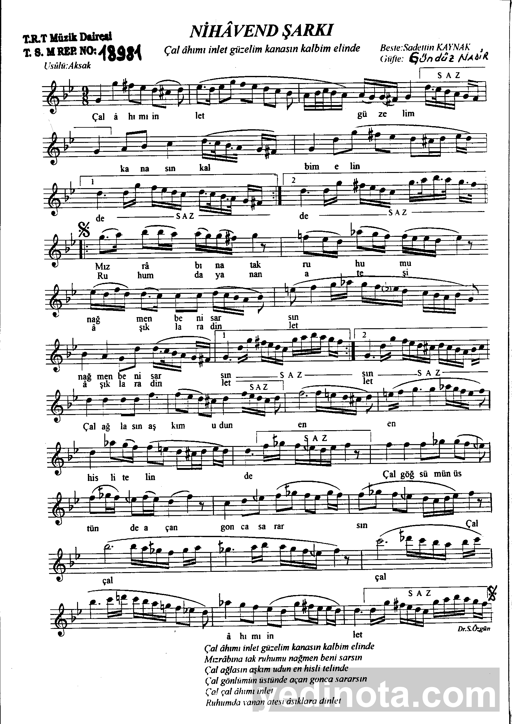 Çal âhımı inlet güzelim kanasın kalbim elinde