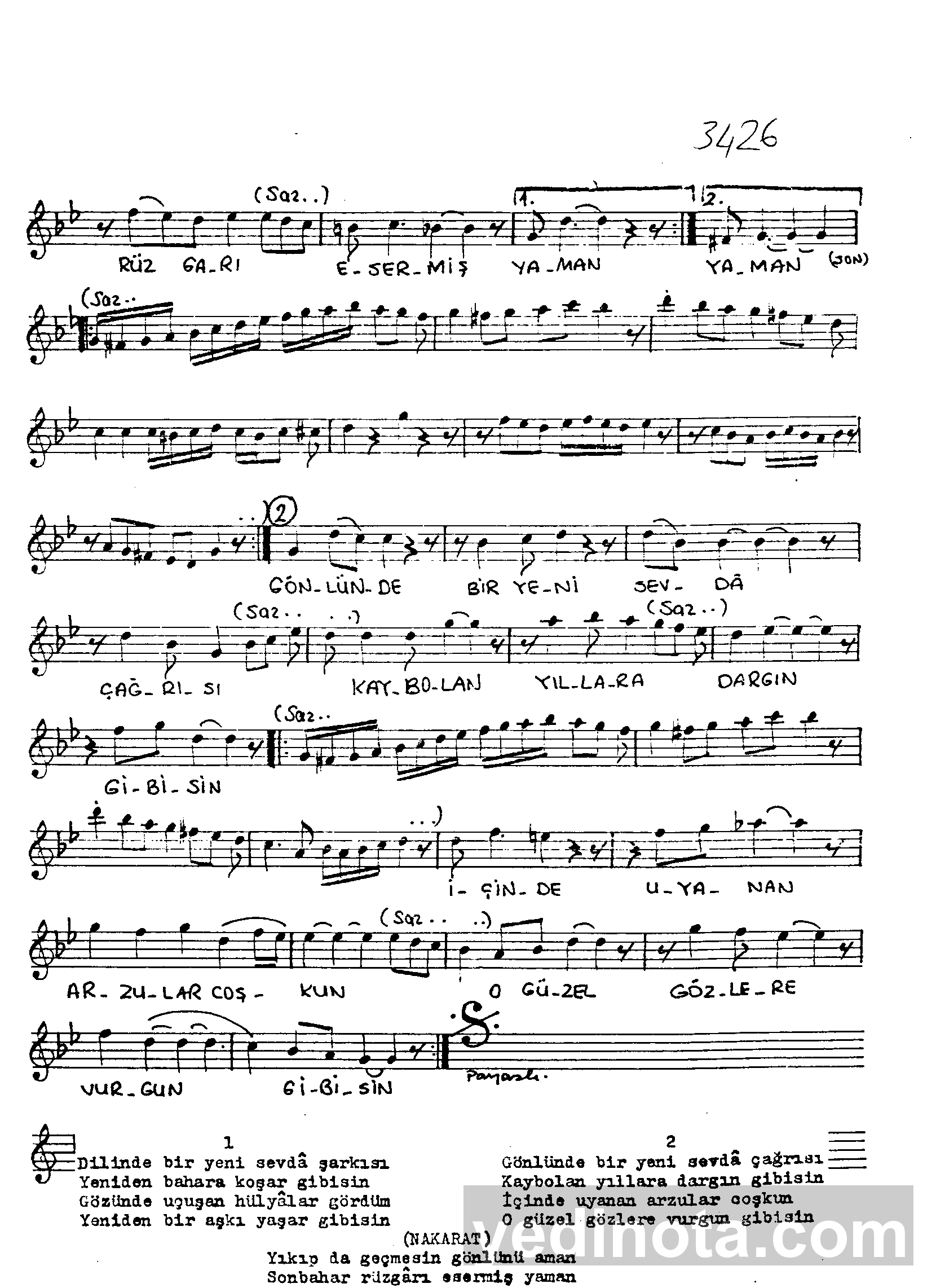 TRT Repertuar Numarası:3426BestekarıBilge ÖzgenSöz YazarıAyten BaykalMakamıNihavendUsulüAksakFormuŞarkı