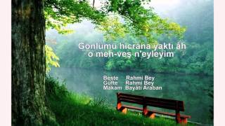 TRT Repertuar Numarası:5106BestekarıRahmi BeySöz YazarıRahmi BeyMakamıBayatiarabanUsulüAğır AksakFormuŞarkı