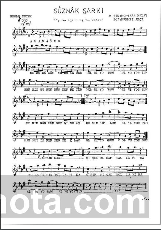 TRT Repertuar Numarası:20015BestekarıMustafa MalaySöz YazarıMehmet AkçaMakamıSuzinakUsulüDüyekFormuŞarkı