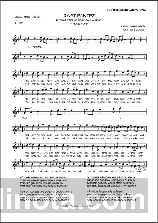 TRT Repertuar Numarası:19121BestekarıFaruk ŞahinSöz YazarıAzmi AytaçMakamıRastUsulüRaks AksağıFormuFantezi