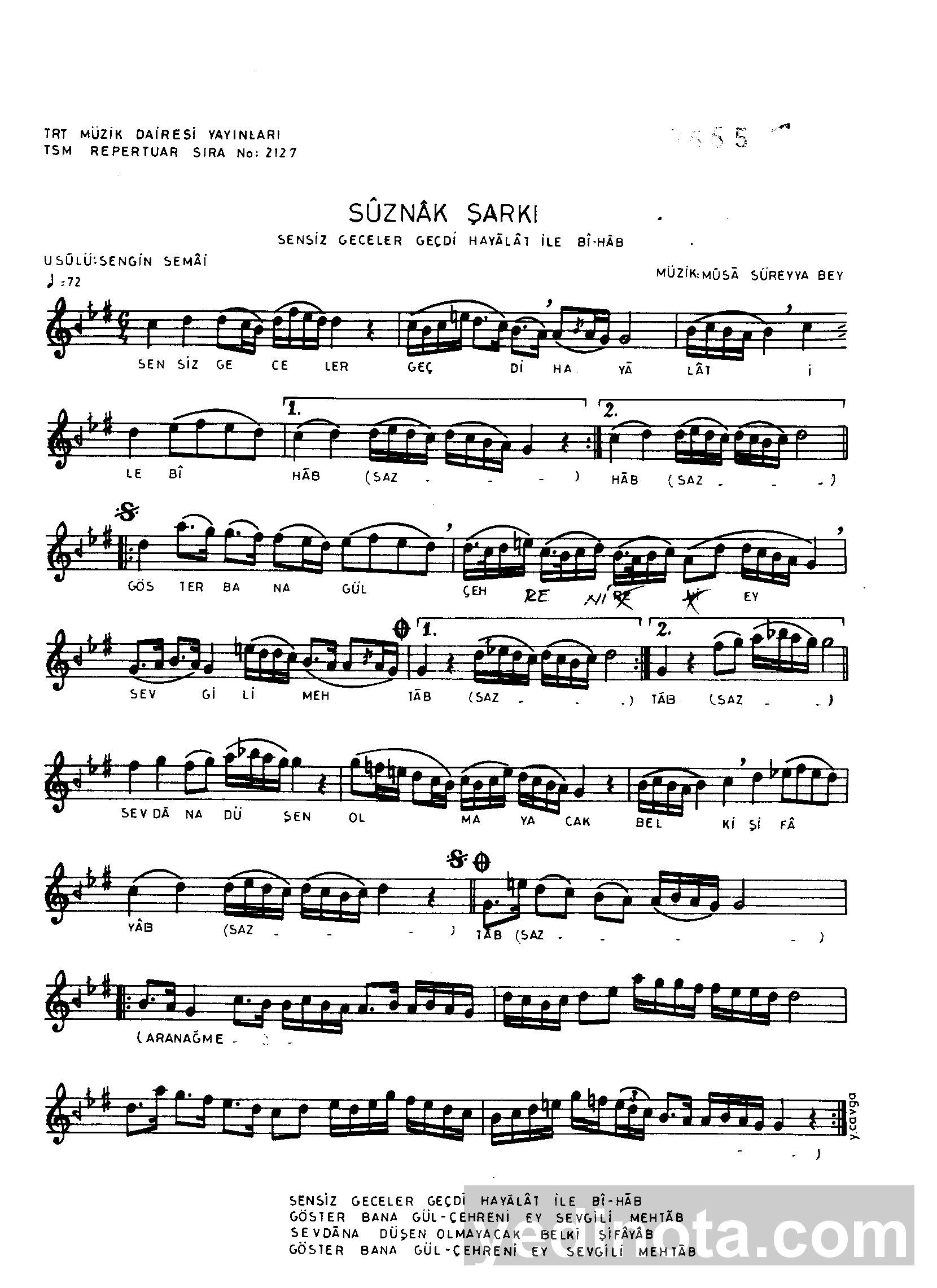 Kemal CANER-Sensiz Geceler Geçti Hayâlât İle Bîhâp (SÛZNÂK)R.G.5 görüntüleme